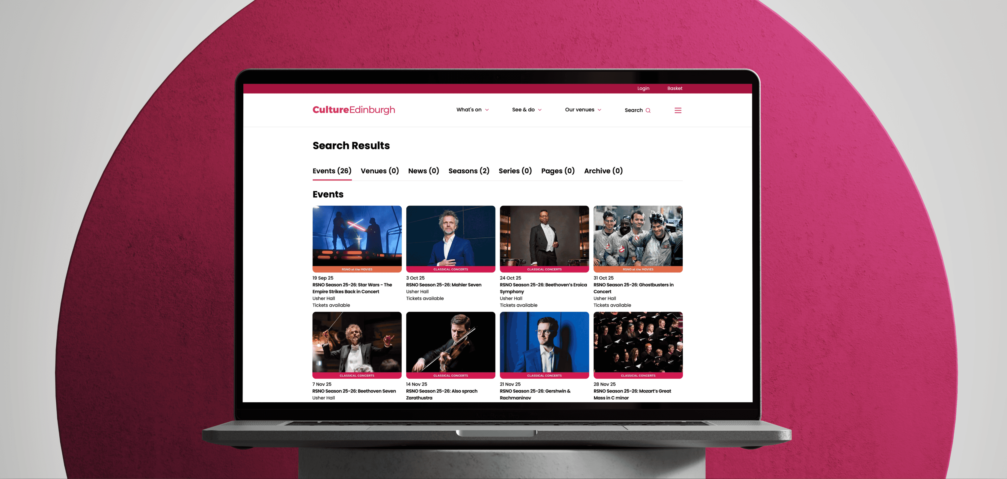 We partnered with the City of Edinburgh Council to design and deliver a single, unified digital platform for Culture Edinburgh. This platform covers a diverse range of cultural venues, music events, festivals and museums, assisting those visiting to search, find, share and book tickets.
