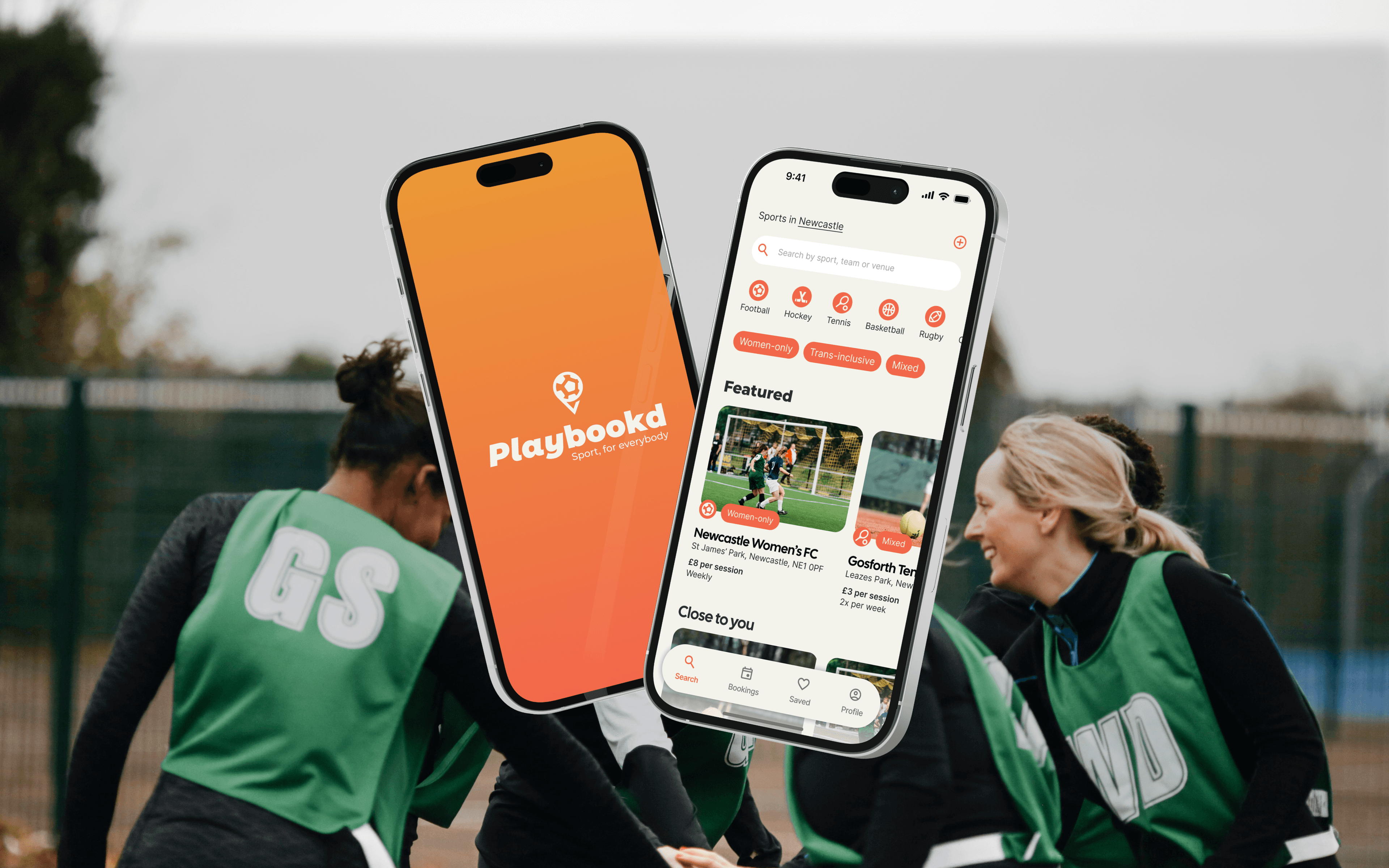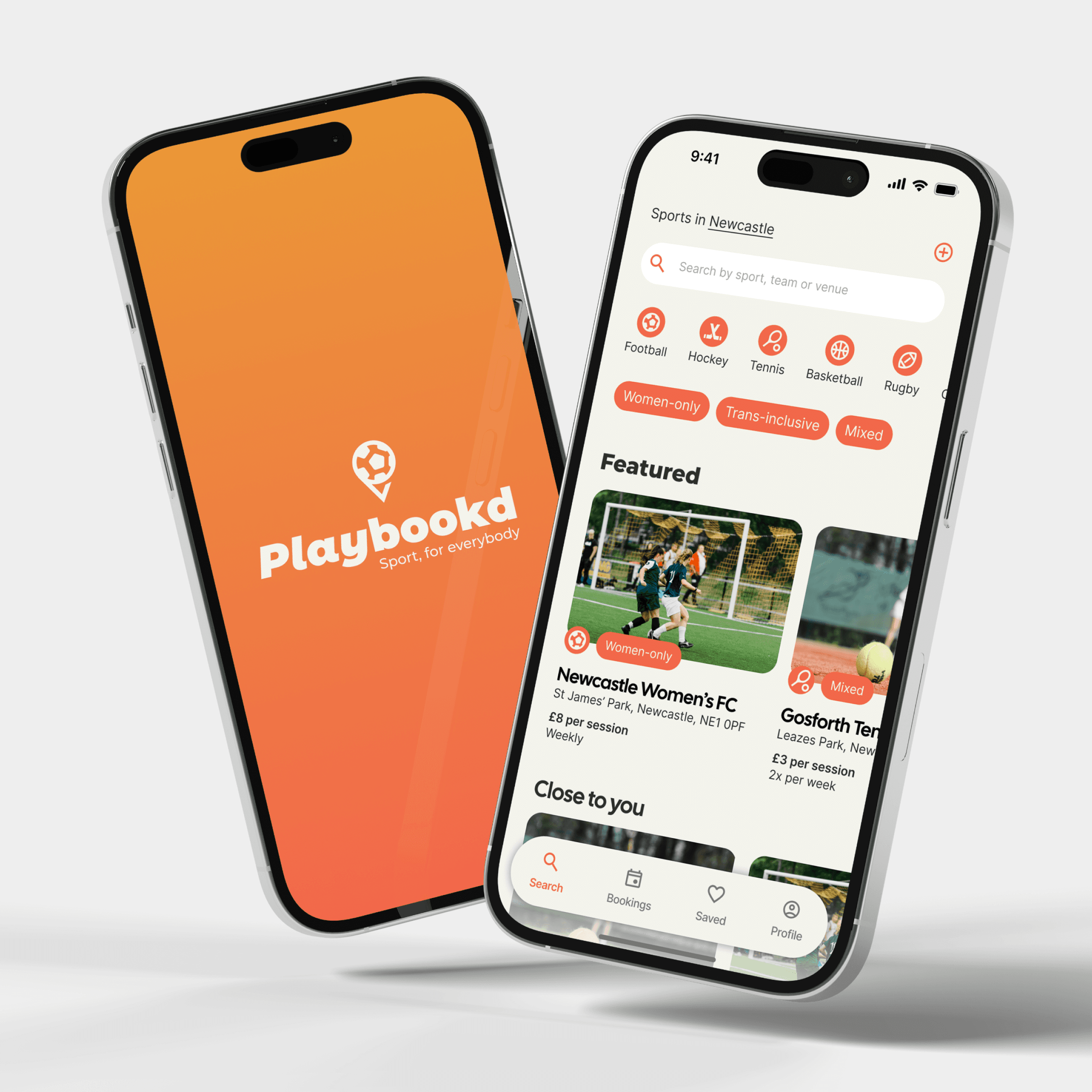 We’re working with TOMME Studio on Playbookd – a location-based sports app helping women, non-binary, and trans users find safe, welcoming ways to get active in their communities.